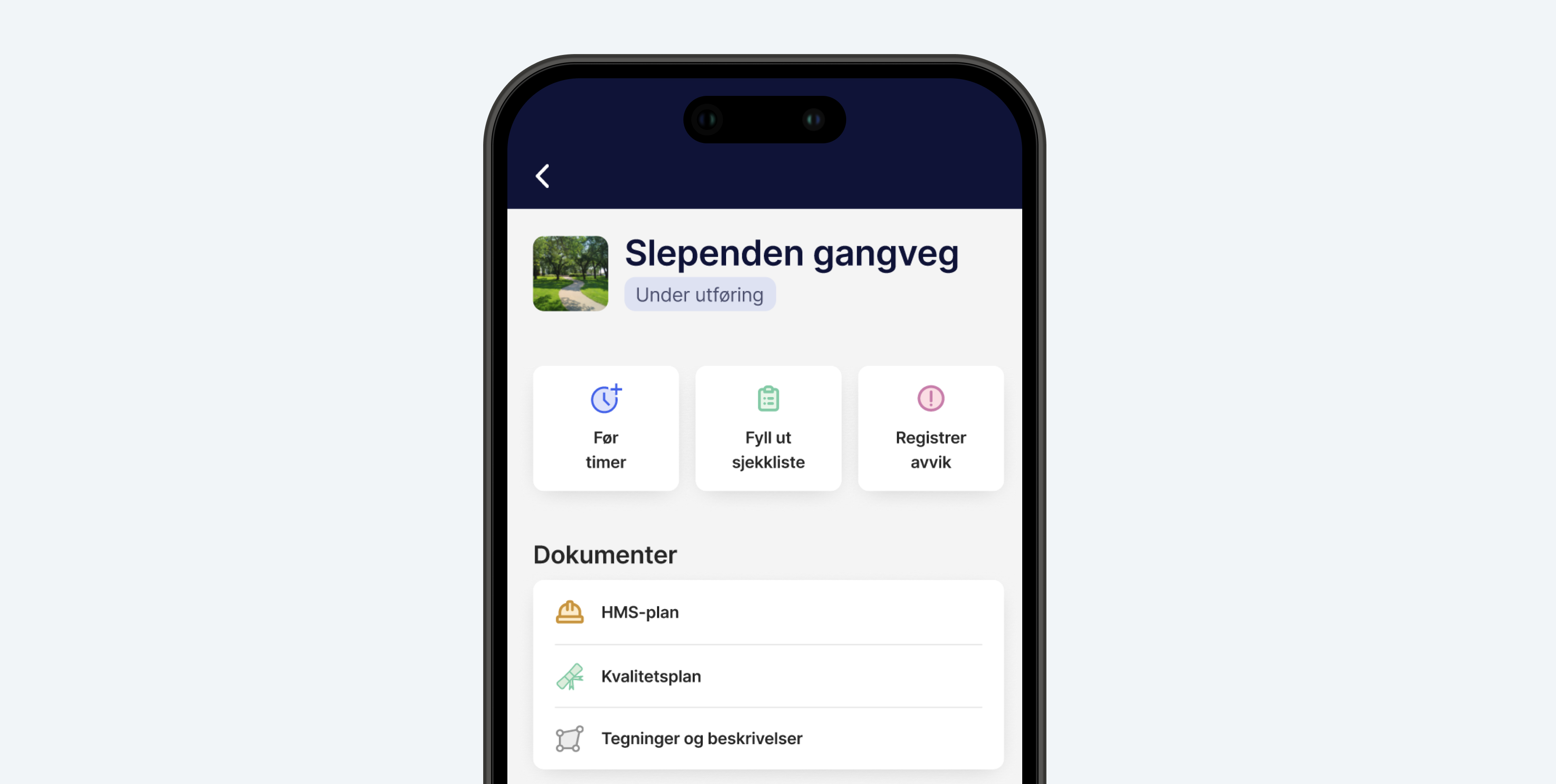 Med vår app kan arbeidere ute på oppdrag enkelt føre timer, fylle ut sjekklister og rapportere avvik når det skjer.